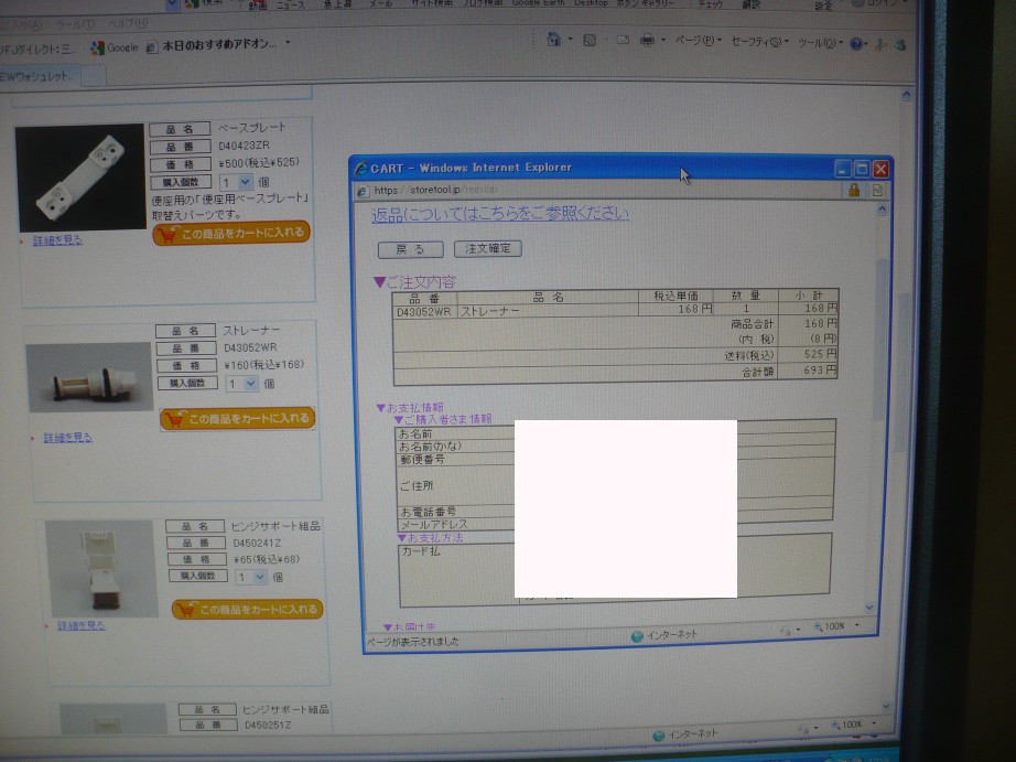 TOTOのWebショップでストレーナー(D43052WR)を購入。