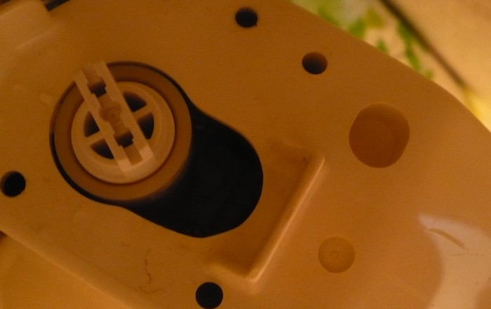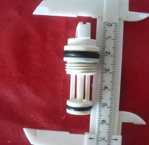 写真は、旧品だが新品も同じだ。メス側ネジが何かの拍子に変形すると水漏れしやすい構造だ。